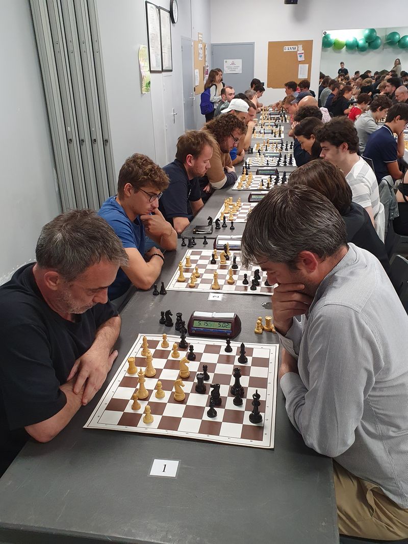 Pas de GMI cette année, bien occupés avec les équipes de France en raison des Olympiades d’échecs en cours en Hongrie. Du coup le tournoi est très ouvert et il a, de fait, été très disputé! A l’arrivée nous retrouvons tout de même les joueurs titrés! Vite accroché (nulle à la ronde 2), le Maître International JB Mullon ne laissera plus rien passer et s’impose avec 81/2 sur 9! Il devance le jeune bordelais Mahaï Garrido, 7 points et la Maître internationale Camille De Seroux. Joli podium! Derrière, pas moins de 6 joueurs atteignent les 61/2!