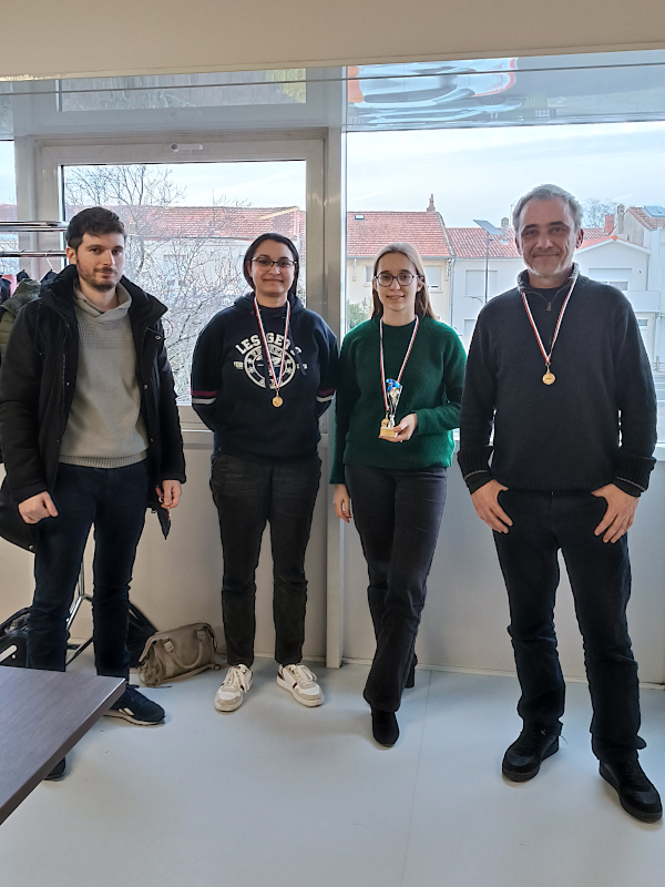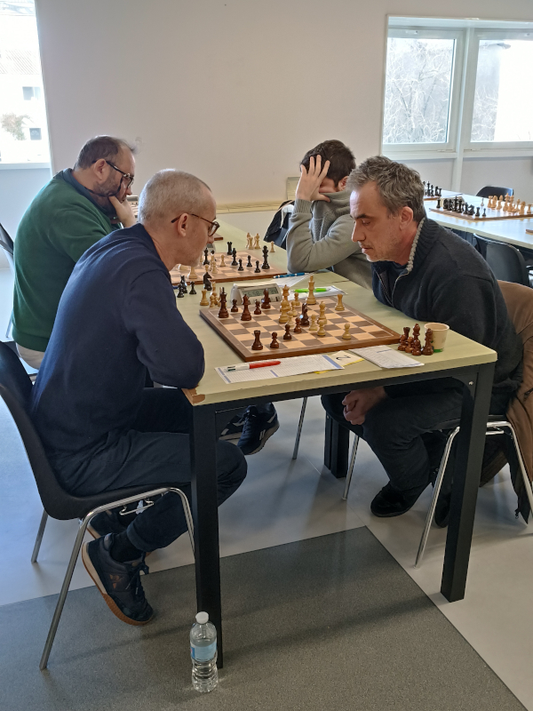 « Merci à tous pour cette journée d’équipe et désolé pour mes parties perdues. Bravo en revanche à Séphora, 3/3!! Paul et Emma pour leur combativité à toute épreuve, à Serge et François pour leur soutien. C’était une belle journée »