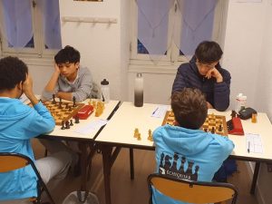 Pendant ce temps à Bordeaux, le club engage 2 autres équipes jeunes en Nationale 3. Guillaume a coaché tout ça et les résultats sont pas mal du tout. Là aussi on a vu les joueurs les plus expérimentés marquer le plus de points. On a vu aussi un super Jonayd être grand prince en proposant nulle à Isabelle sa partenaire de club. Laquelle demande à Guillaume… capitaine des deux équipes 🙂 . A l’arrivée avec 2 match gagnés, et un perdu de justesse, l’équipe 2 reste en embuscade au classement alors que l’équipe 3 a sauvé deux matchs nuls : bien ! Bravo à Vianney, Adam, Jonayd, Vasco, Samuel, Antoine, Isabelle et Ioan! Il y aura des renforts lors des prochaines rondes histoire que davantage de jeunes encore découvrent la compétition par équipe !