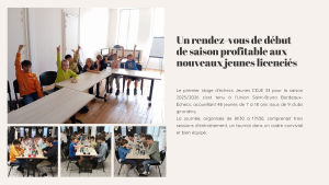 Le 1er stage échecs de la saison 2025/2026 organisé par le CDJE 33 pour les jeunes du département s’est déroulé dans les locaux du club de l’Union Saint-Bruno Bordeaux-Échecs et a accueilli 48 participants de 7 à 18 ans.